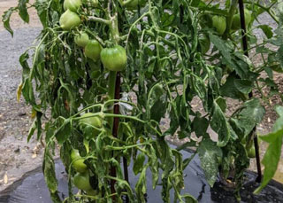 青枯病の病徴が現れたトマト