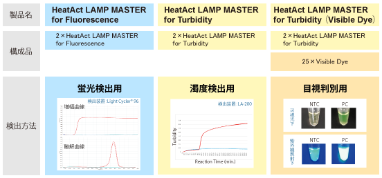 濁度検出用の「HeatAct LAMP MASTER for Turbidity」の2種類があります。
