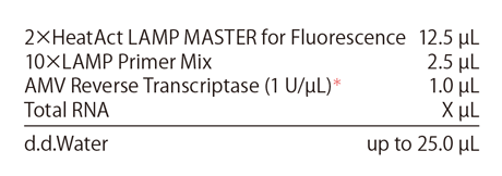 逆転写酵素を添加し、RT-LAMP可能RT-LAMPにおける50℃での逆転写反応など、柔軟な反応設計に対応します。逆転写酵素は別途ご用意ください。